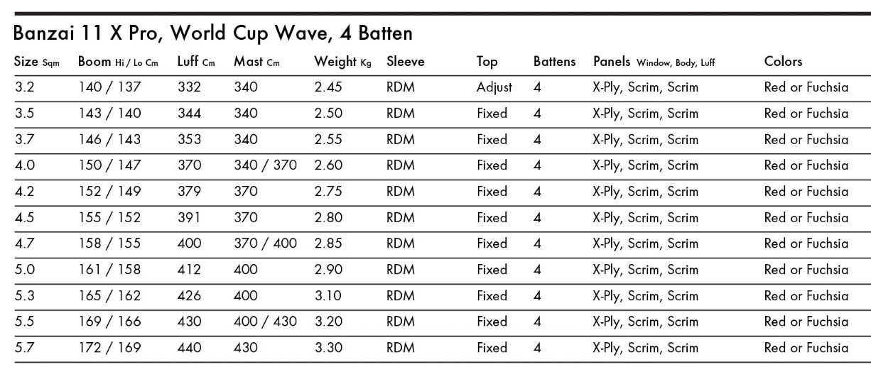 Handling Characteristic: The lift is slightly higher up and further back compared to Banzai Surf Pro and Banzai Max Pro, which promotes a more upright feel but also gives a touch of back hand pressure for more throttle when you need it. A direct but flexible feel keeps you connected at all times during maneuvers. Banzai 11 Pro is our World Cup performance wave sail designed to win in all wave and maneuver conditions.